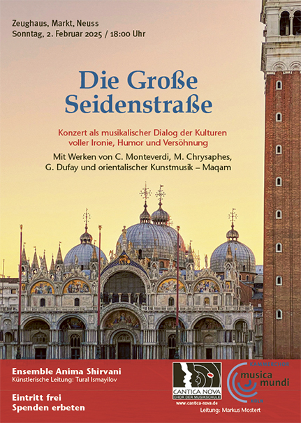 Eine interkulturelle Reise voller Ironie, Humor, Tragik und Versöhnung, vereint in einer Geschichte. Im Dialog der Kulturen sangen und spielten die Chöre CANTICA NOVA und musica mundi (Köln) mit Anima Shirvani, einem auf historische Aufführungspraxis spezialisierten Instrumental Ensemble.